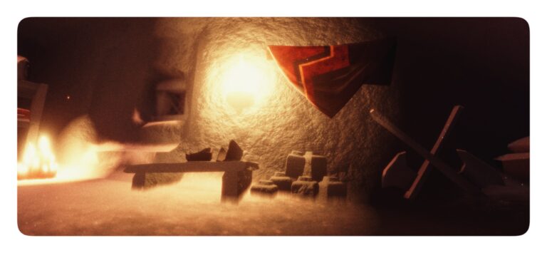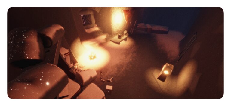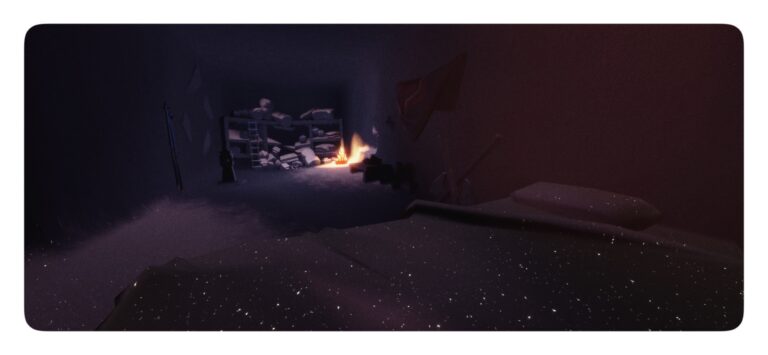 火を灯すと。隠者の峠を抜けた瞬間のように、一気にこの廃墟は表情を変える。暖かな色へと変わった部屋で、家具にまとわりつく氷の粒は、まるで星屑のようになる。