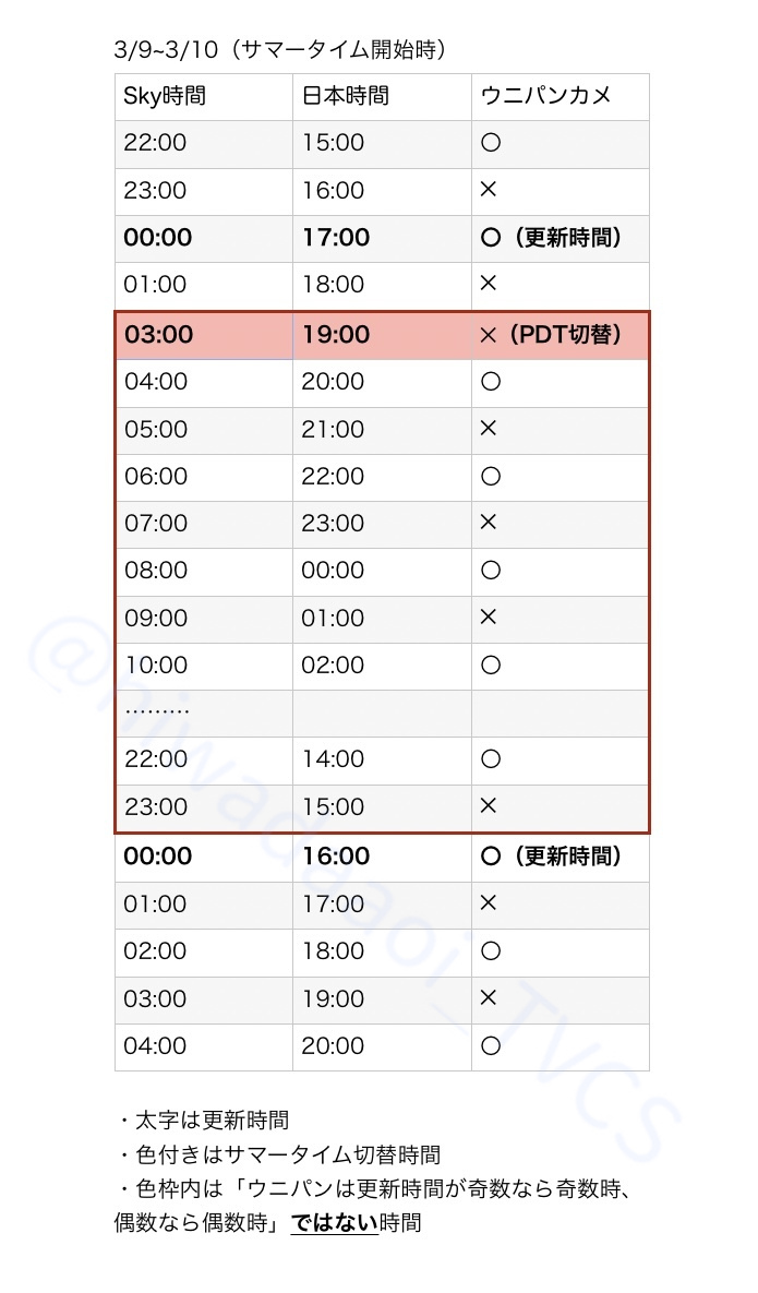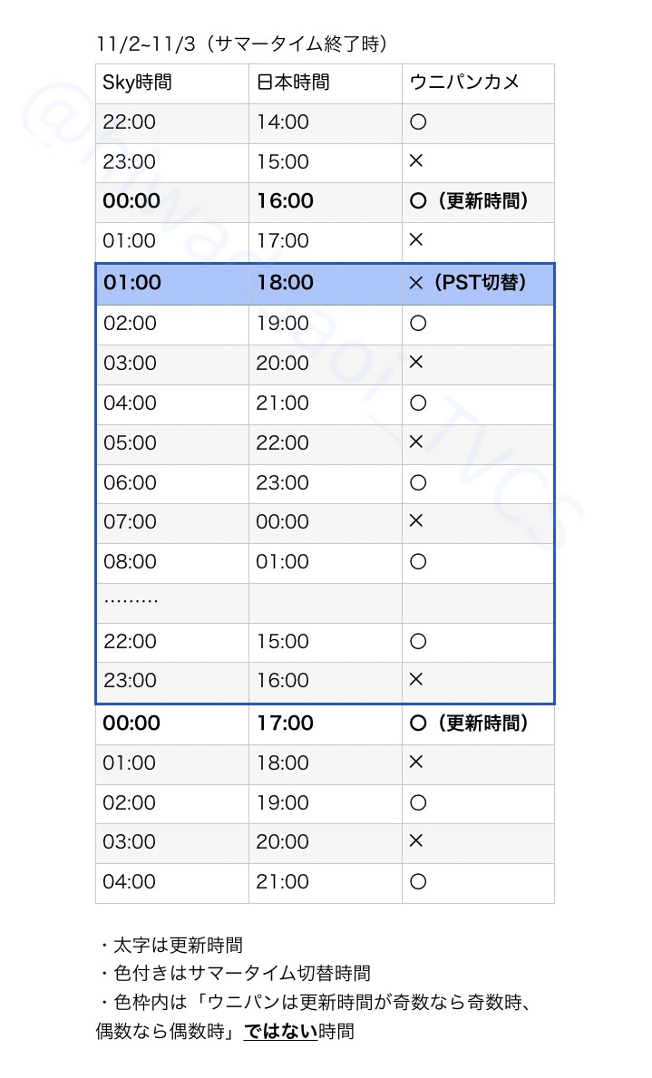 ここまでを踏まえて、Skyのサマータイム切り替えは何時に行われるか。そう、更新時間の2時間後です。