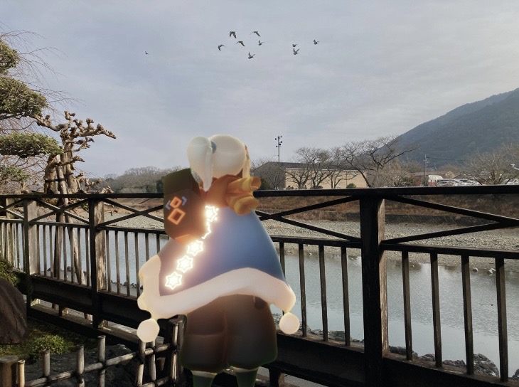 車から降りると川がありました。川の水はとても綺麗で、キラキラと輝いていました。しばらく川に沿って歩いていると首の長い鳥が潜水しているところを見ました。空の王国では、泳ぐ鳥は見たことなかったのでとても興味深かったです。