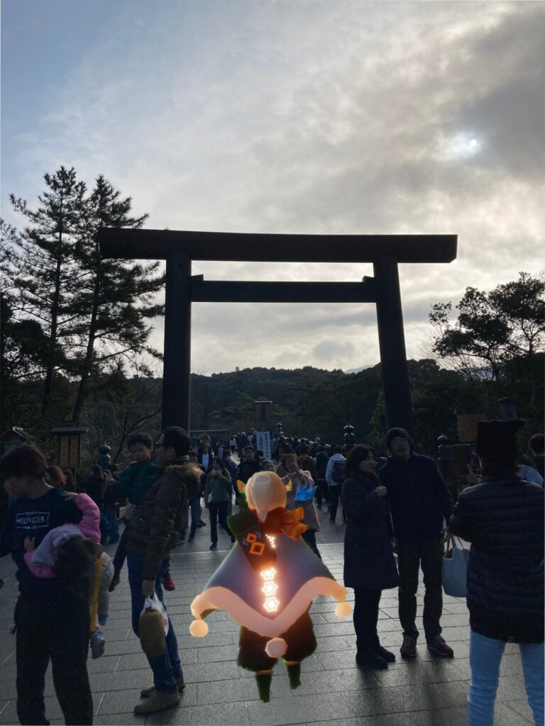 私は大晦日の日に、車に乗って伊勢神宮へ参拝に行きました。
