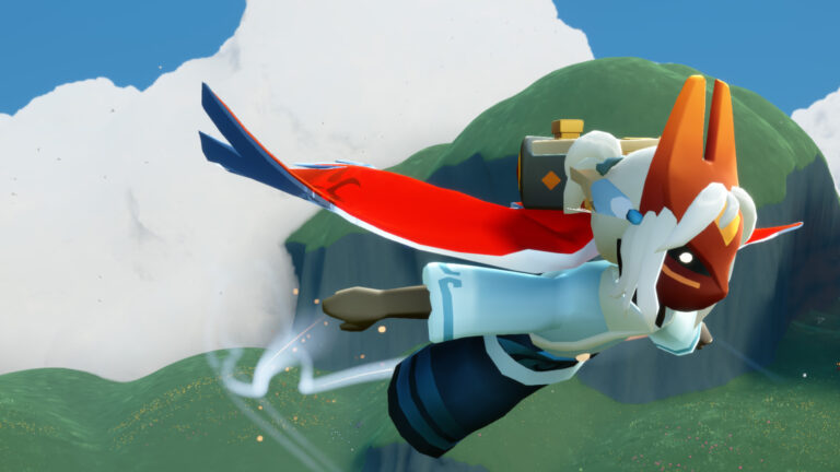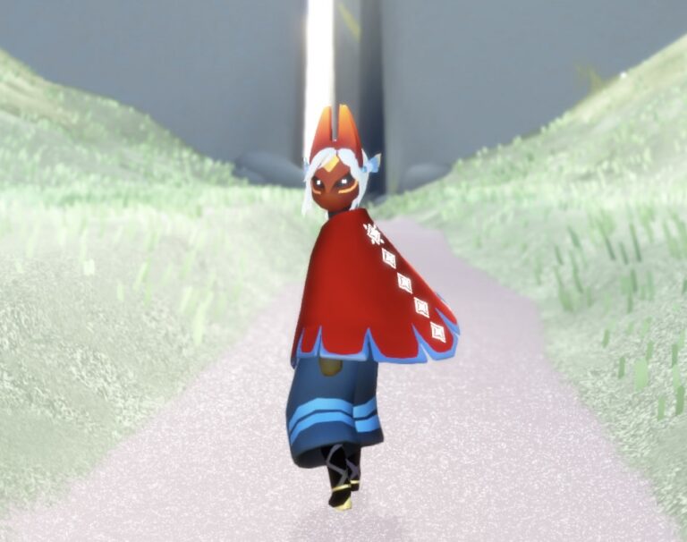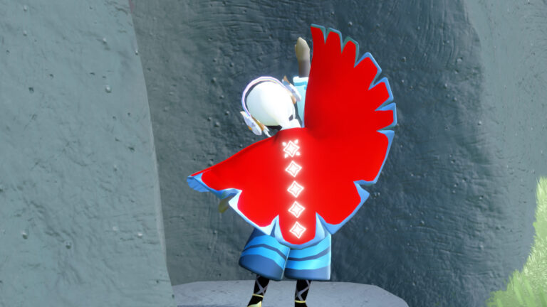 赤いケープにブルーのラインを引いたミャクミャクと同じカラーリング