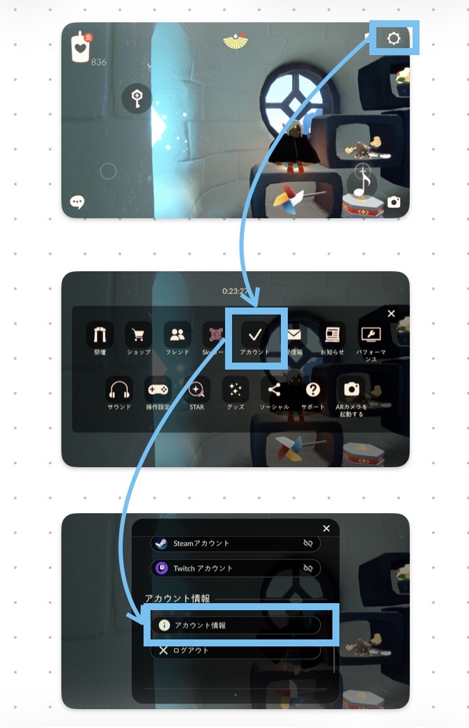 skyIDは「設定」→「アカウント」→アカウント画面の1番下の「アカウント情報」を押す