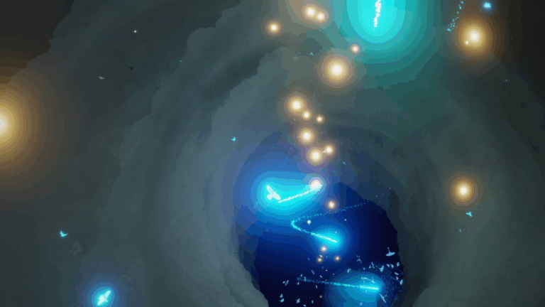 そしてこの青い光。 皆さん何か思い出しませんか? 渦の底を照らす光の色と動きが、あのサーチライトそっくりなんですよね。