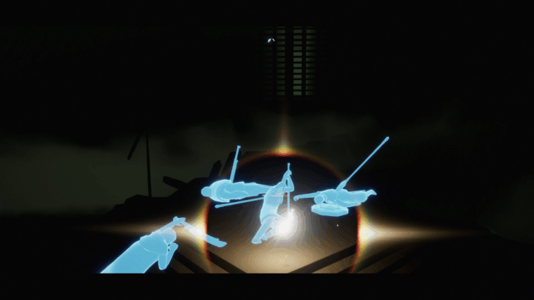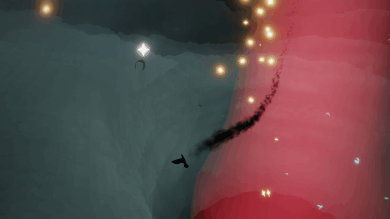 場面が暗くなるのに合わせて、周囲を青い光が漂い始め、渦の穴へ入っていきます。この青い光に触れたり、あるいは渦の中へ入ろうとするとダメージを受けてしまいます。