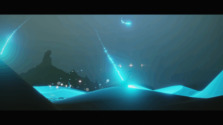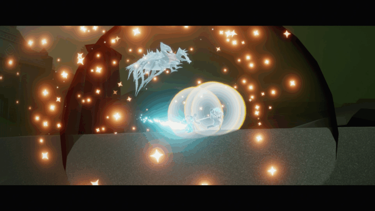 地上に幾度も降り注ぐ、この青い光。 赤くならず青いままですが、突進してくる暗黒竜のサーチライトだけを見たら、こんな動きになると思いませんか? 精霊や光の生物に向かって、暗黒竜が幾度もあの突撃を繰り返す姿は想像に難くありません。