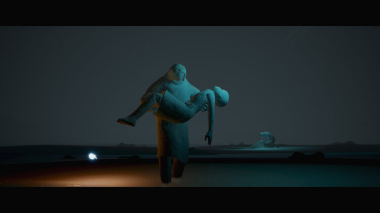 気が付くと荒涼とした暗い砂丘を飛ぶたった一匹の蝶となっており、周囲にはあちこちに精霊の亡骸らしき石像が並んでいます。