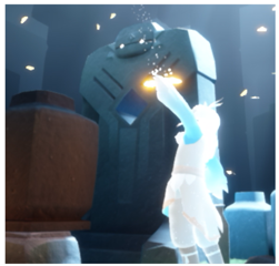 公式日本語生放送によれば、峡谷の大精霊の古いコンセプトが元になっているんだとか!当時のコンセプトには、峡谷の大精霊たちが2人で光を合わせて闇を消し去るシーンがあったそうで、これが後の「火を掲げるエモート」に繋がったというのです。