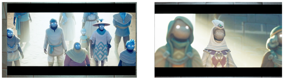 羽ばたく案内人が神殿の入口を見上げます。その様子が、懐かしさを思い出すようにも感じられるのです。急いで神殿へ入ることもなく、静かにそっと入口を見上げる様は、羽ばたく案内人が草原の村や草原の神殿での出来事を、とても大切な思い出として心に残していた証拠ではないかと思います。