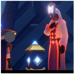 羽ばたく案内人も星の子と一緒に草原の大精霊と会うのかと思いきや、羽ばたく案内人は草原の大精霊と対峙するムービーには登場しません。その代わり、ムービー終了後(≒星の子が瞑想から戻ってきた後)、羽ばたく案内人は草原の大精霊の像に蝶々使いのエモートを披露します。