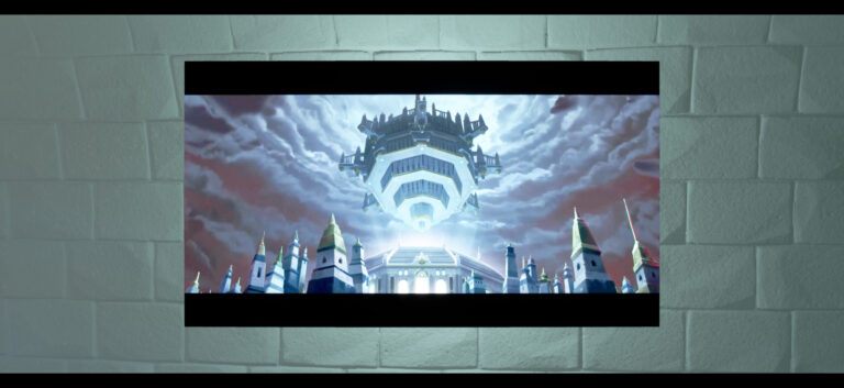もうおわかりいただけたかと思います。映画Skyの書庫最上階はゲーム内と異なり、まだ建物が壊れずに残っていますね。
