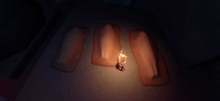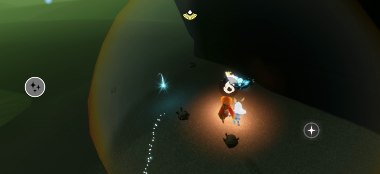 星の子が地下洞へ行くには、晴れ間で誰かと一緒に怒りのエモートをして、足元の岩を崩さないといけません。