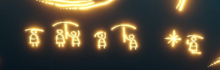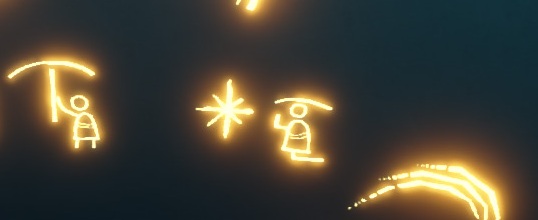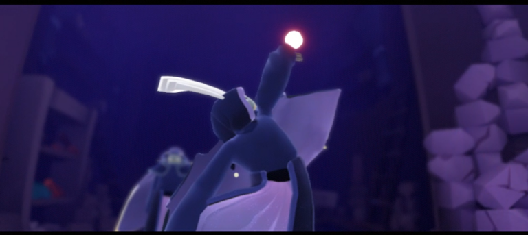 こちらはエンディングムービーの一部。修繕者たちが、任務の習得に挑戦した星の子へ光を渡していますね。
