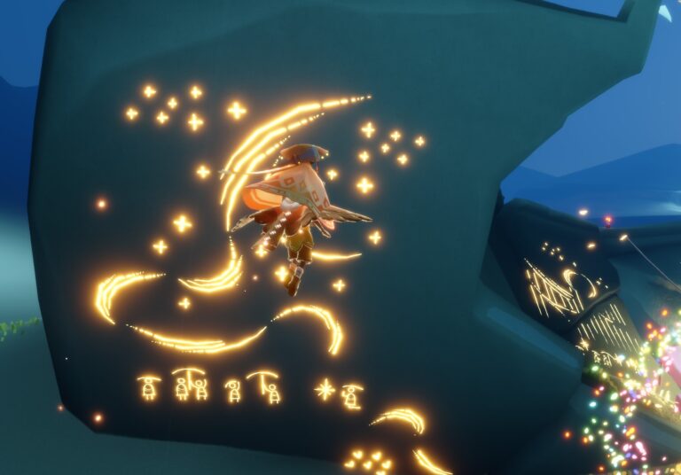 星の子が魔法を使う動作で光を取り出しているではありませんか!これは季節のクエストを全て終えたあとで記憶の燈を修繕するときに挿入されるムービーの一部で、星の子が取り出した光は記憶の燈の修繕でしか使えない特別な魔法と思われます。